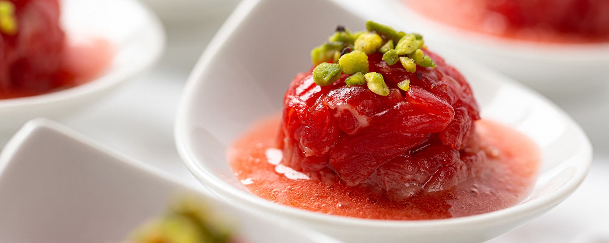 - Sushi pizza: roll di pizza di riso venere, ripieno di fior di latte, crudo del maiale nero di Faeto, salsa di pomodoro fresco